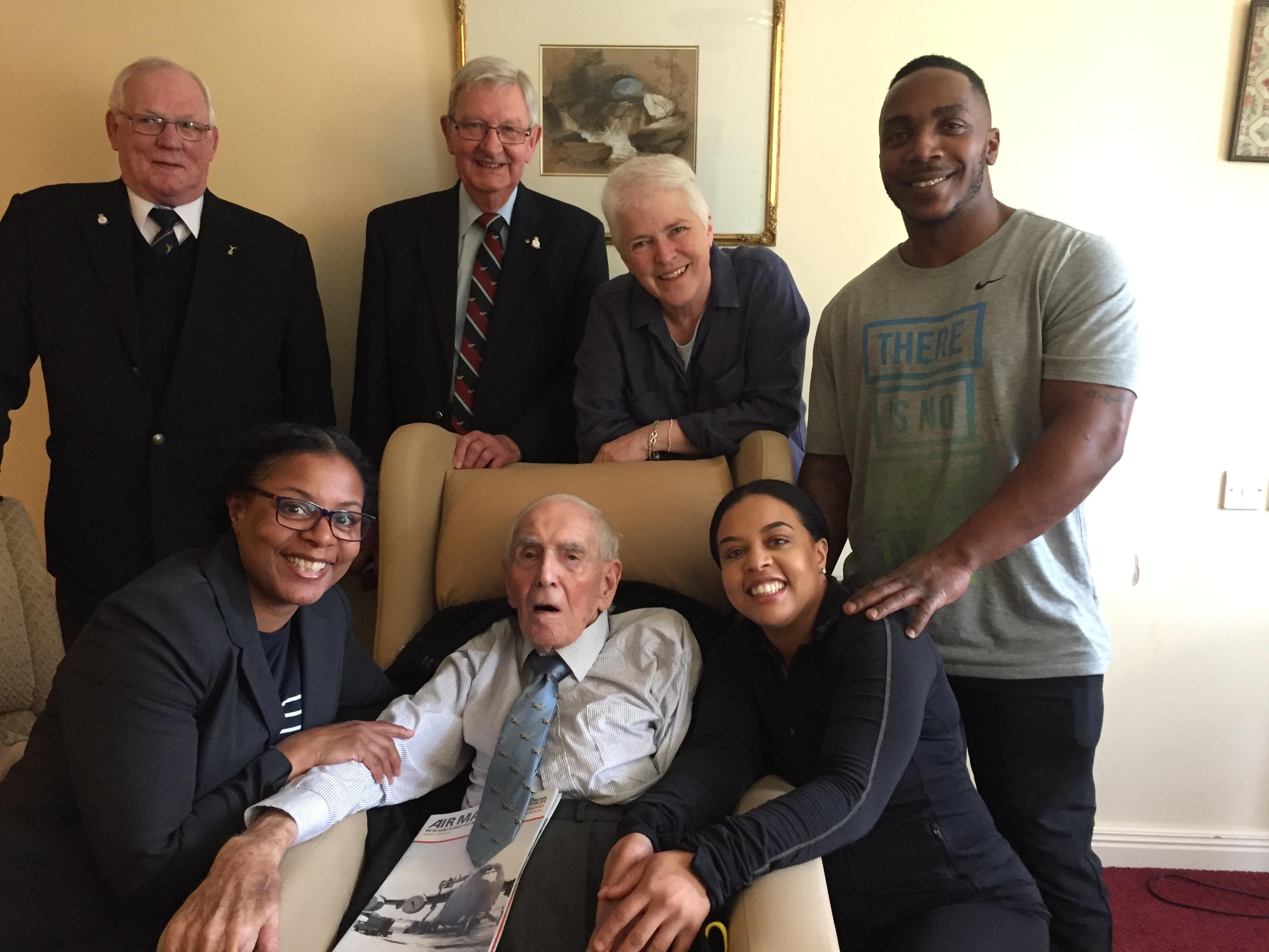I have the honour to assist John Barrington Edwards who lives in Sunrise Nursing Home, Edgbaston. Barry is proud of his history as a flight engineer in 49 Squadron Lancaster Bombers flying out of Syeston, Nottingham. I was pleased to arrange for David Jelfs (secretary) and Bill Wheeler (president) of the Royal Air Force Association, Birmingham/Moseley branch to visit Barry. They kindly presented Barry with a Lancaster Bomber tie and Battle of Britain Memorial Flight pin badge. They truly represented the association’s motto offering ‘Friendship Help Support’.